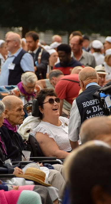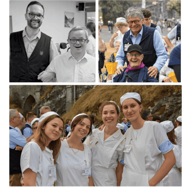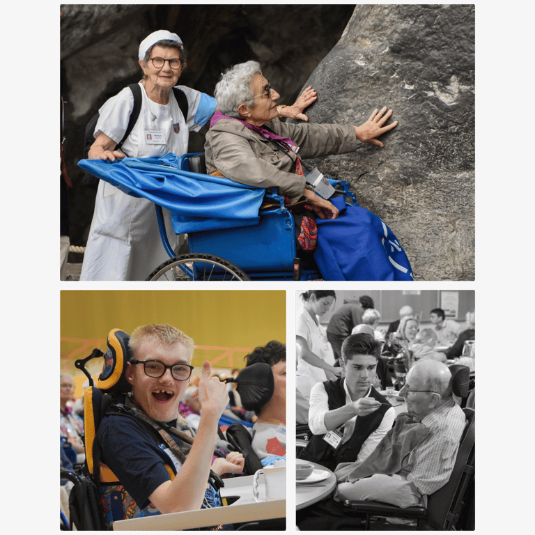 Être hospitalier, c’est vivre concrètement sa foi au service des pèlerins fragiles, en leur apportant une aide physique et une présence fraternelle. Chaque bénévole reçoit une mission adaptée à son âge, sa sensibilité et ses capacités :