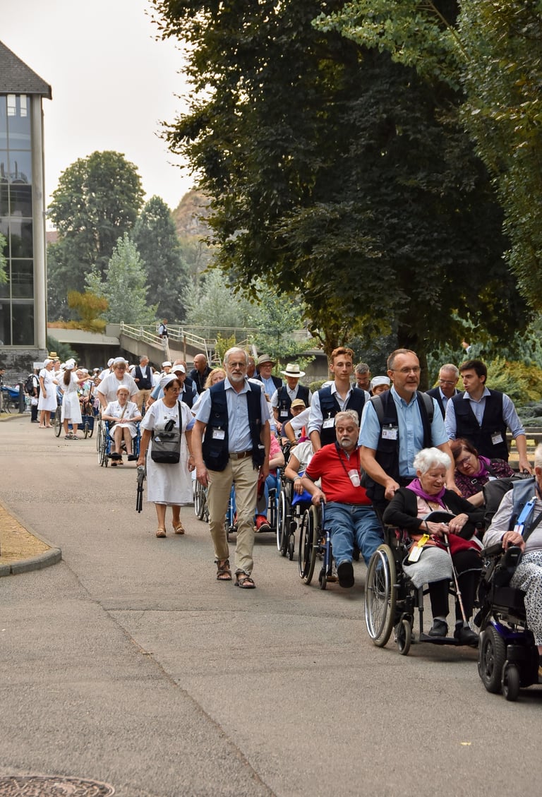 Toutes les célébrations et activités sont conçues pour vous offrir un pèlerinage priant et serein. Vous vivrez des temps forts comme la messe internationale, le passage à la Grotte et aux piscines, les processions eucharistique et mariale, ainsi que des moments de convivialité avec tous les malades et hospitaliers.